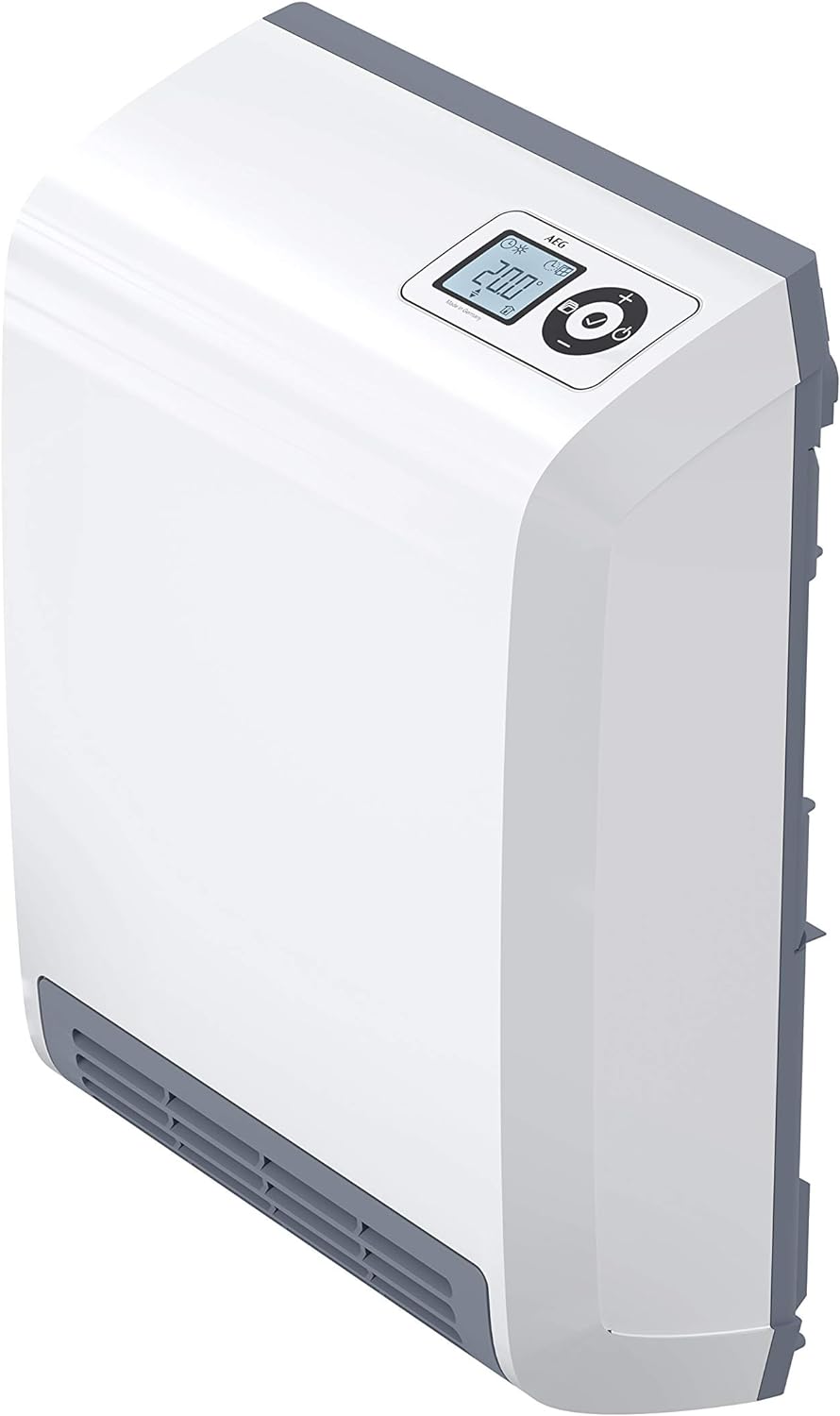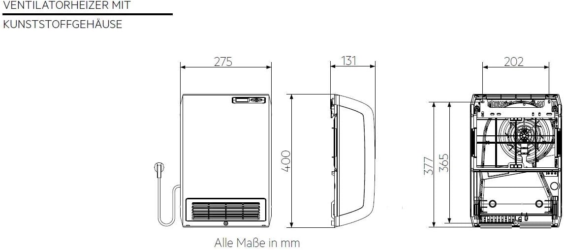Der kompakte, wandhängende Ventilatorheizer eignet sich ideal als Vollheizung im Bad oder als effiziente Übergangs- und Ergänzungsheizung, z.B. im Gästezimmer oder Hobbyraum. Das elektronisch geregelte Gerät erwärmt die Raumluft schnell und gleichmässig. Der Ventilatorheizer zeichnet sich durch seine optimale Bedienfreundlichkeit aus. Er ist mit einem grossen, gut ablesbaren Display ausgestattet. Die gewünschte Raumtemperatur ist am Bedienteil einstellbar. Zu den weiteren smarten Funktionen des Gerätes zählen ein Wochentimer mit zwei voreingestellten und einem individuell programmierbaren Zeitprogramm, die adaptive Regelung als Lernfunktion für zeitgenaues Erreichen der Komforttemperatur im Timerbetrieb sowie die 'Offene-Fenster-Erkennung' zur Vermeidung von Energieverschwendung. Der Ventilatorheizer ist von einem robusten und widerstandsfähigen Kunststoff-Gehäuse umgeben. Wochentimer mit 3 Zeitprogrammen, Frostschutzfunktion sowie Offene-Fenster-Erkennung Rückseitiges Kabeldepot für die Anschlussleitung Sicherheit durch Überhitzungsschutz.