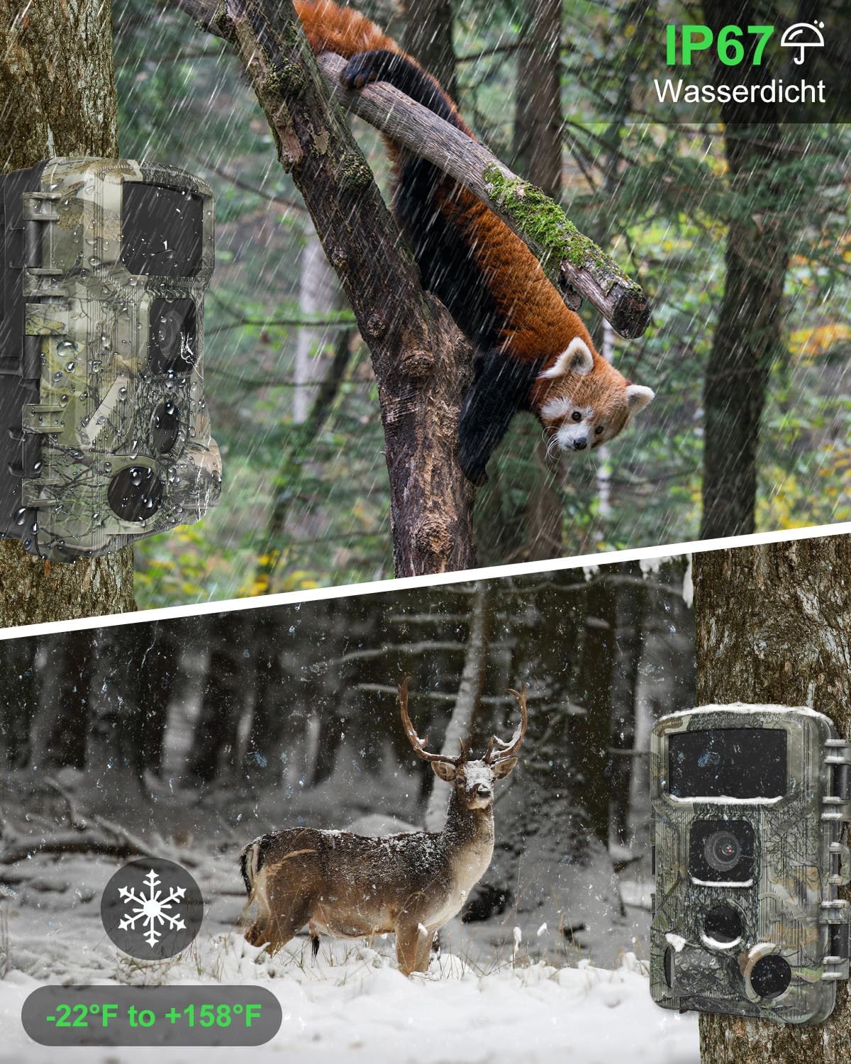 Wildkamera mit WLAN, 4K, Nachtsicht, IP67, 130° Winkel