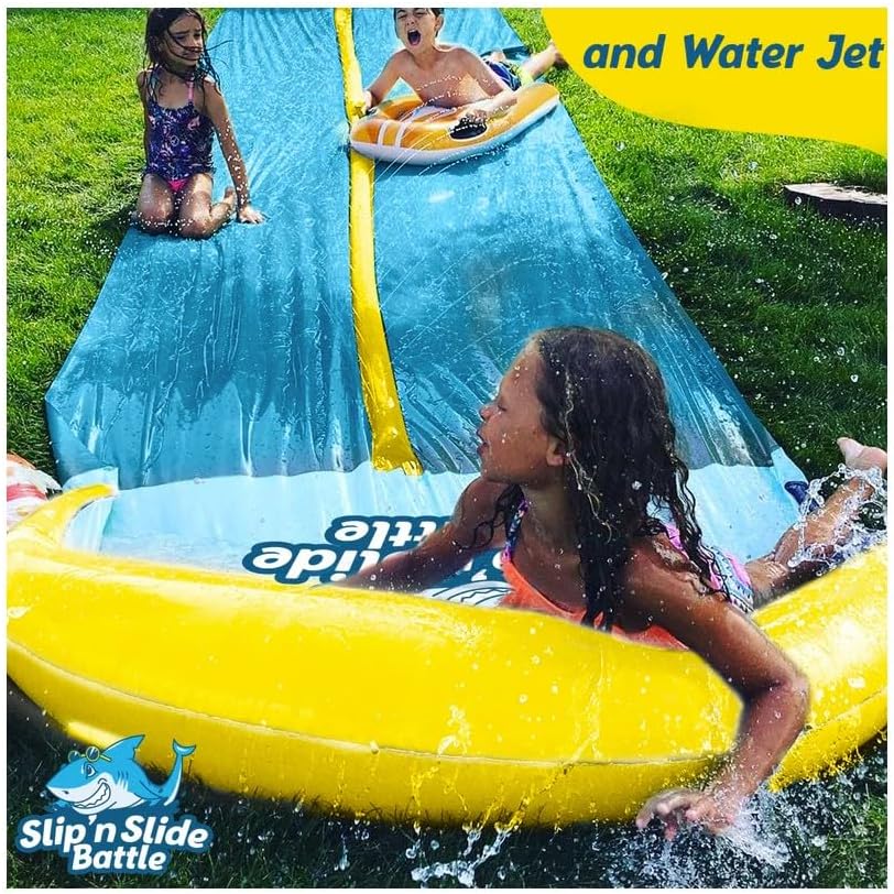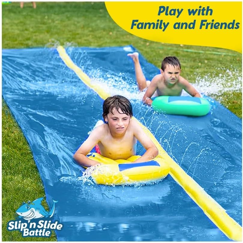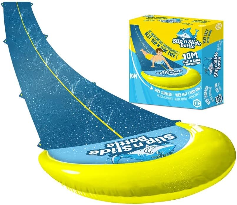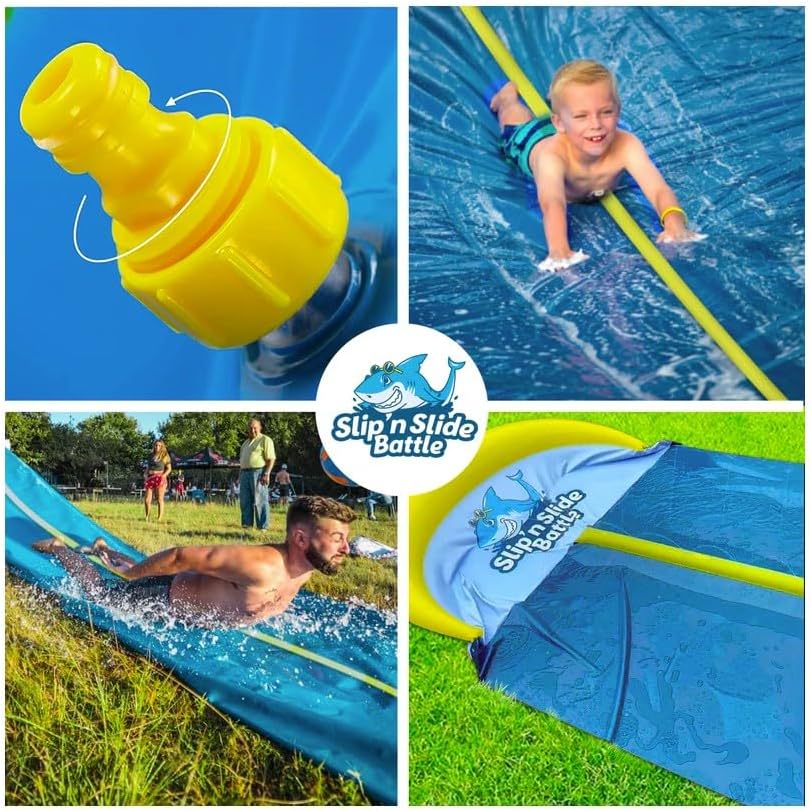Die VentriBattle Zweibahn-Rutschmatte ist das ultimative Wasserspiel für den Aussenbereich, das bei jedem Sommerfest für Aufsehen sorgt. Mit beeindruckenden 10 Metern Länge und einer Premium-Qualität, die sich in der überdurchschnittlichen Dicke, Steifigkeit und Geschwindigkeit herauskristallisiert, verspricht diese Slip'n Slide Matte einen Vorsprung im Bereich der Outdoor-Vergnügungen. Das Material, bestehend aus 0,22 mm starkem PVC, übertrifft den Industriestandard um 38 % und garantiert durch seine Robustheit eine langlebige Nutzung. Dies spiegelt sich auch im zuverlässigen 6-Punkt-Befestigungssystem wider, ergänzt durch ein Sofort-Reparaturband für den Notfall. Im Handumdrehen ist die Rutschmatte dank ihrer durchdachten Konstruktion einsatzbereit – flach oder schräg ausgelegt, an den Wasserschlauch angeschlossen, und schon beginnt der rutschige Spass. Mit der VentriBattle Slip'n Slide steht einer unvergesslichen "Olympiade" mit Familie und Freunden nichts mehr im Weg.